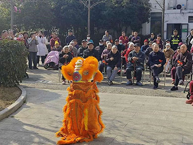 活动现场,小花园里含苞待放的玉兰、星星点点的红李花、破土而出的嫩草芽,处处洋溢着盎然春意。活动在充满新奇与欢笑的“科技初体验”中拉开序幕。智能机器人成为了全场瞩目的焦点,它们不仅能够与长者们进行互动、打招呼,还给长者们带来了精彩的才艺展示。在喜庆洋溢的音乐下,机器人跳起欢快的舞蹈;随着音乐的切换,机器人又表演起刚劲有力的武术招数;最令人惊喜的是,机器人还惟妙惟肖地模拟出传统舞狮的灵动姿态,摇头摆尾,栩栩如生。这些生动有趣的表演赢得长者们的阵阵掌声和欢笑,让大家在零距离互动中深切感受到了人工智能的奇妙魅力与现代科技的温暖。